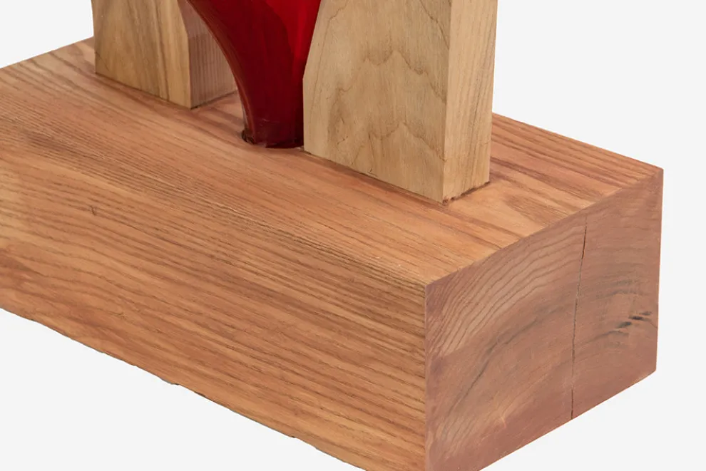 Breathe Inis made from ash, Douglas fir, oak, reclaimed wood and hand-blown glass. This unique sculpture is hand-painted in water-based paint and finished in a clear, natural lacquer.