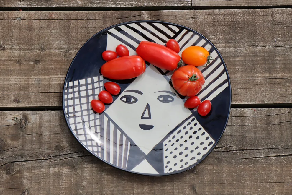 Use this Mono Face Platter to serve up a feast. Featuring a black and white face and abstract patterns, every platter is painted by hand, meaning each one is unique.