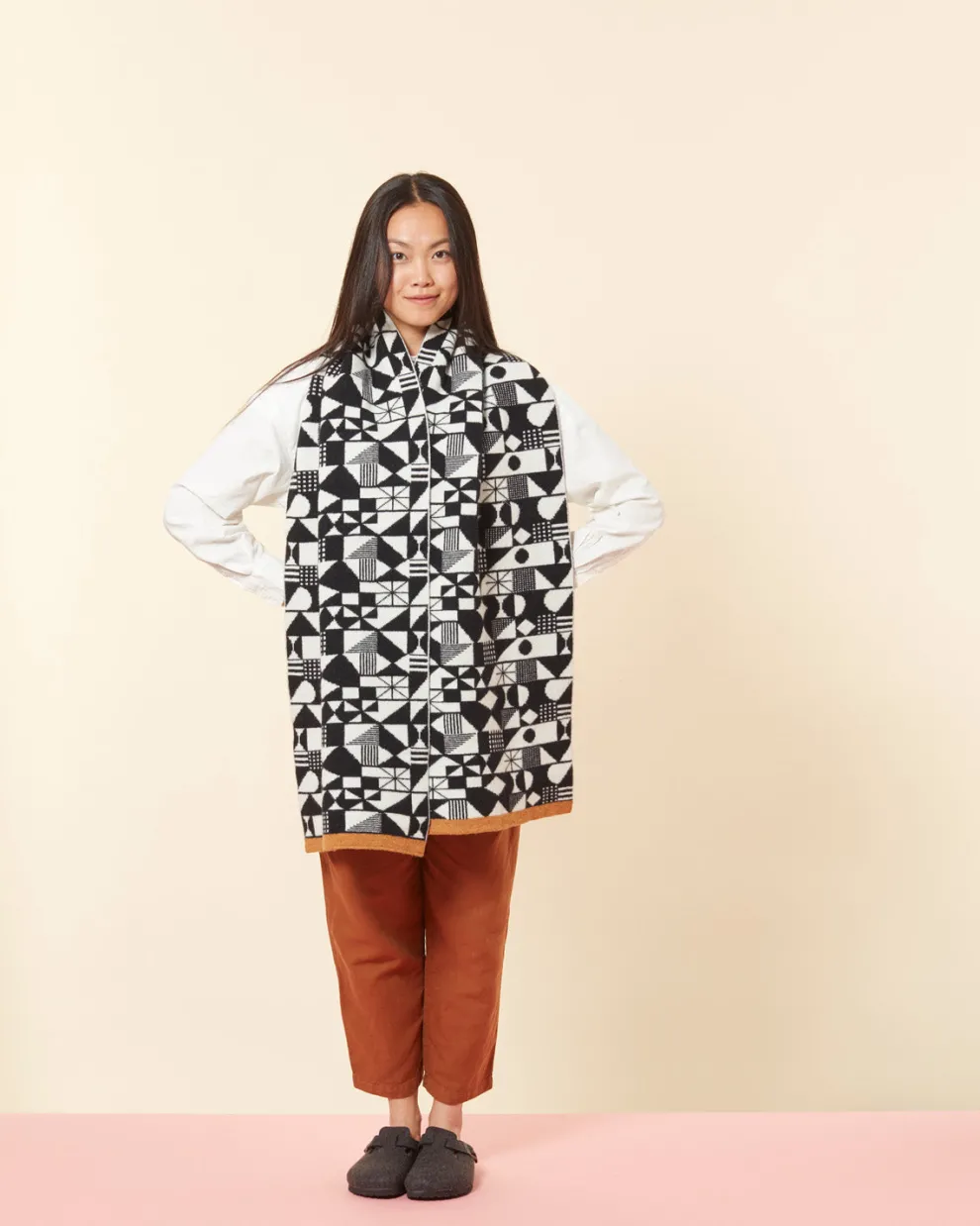 This Monoglyph Blanket Scarf doesn’t need much in the way of colour to make a big impression. Extra wide to keep you as snug as can be.