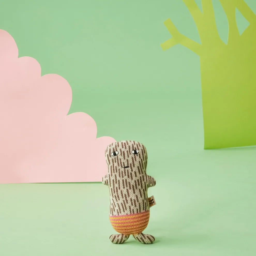 We knit all of our lambswool creatures in the UK using the softest yarns. Each one is assembled and embroidered by hand – you can find the name of each creature’s maker on its cardboard tag. We package each one in a drawstring cotton bag and we give each creature a little squeeze before sending it to its new home.
