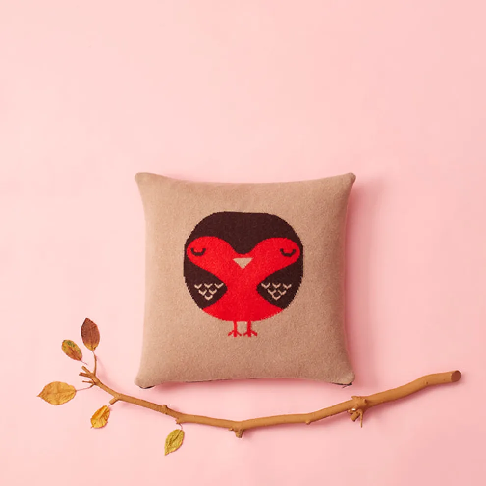 The return of one of our classics, this cosy knitted Robin Cushion will keep you company on the sofa.