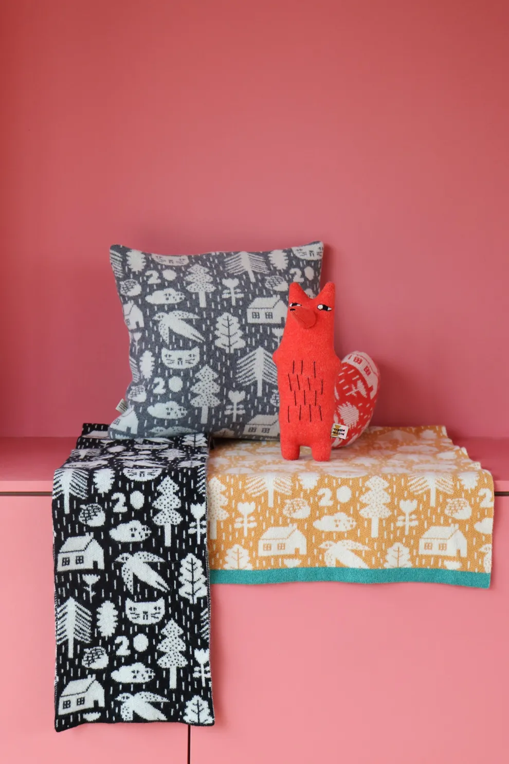 This soft, knitted blanket is decorated with a pattern featuring our most popular designs and motifs from the past two decades – how many do you recognise?