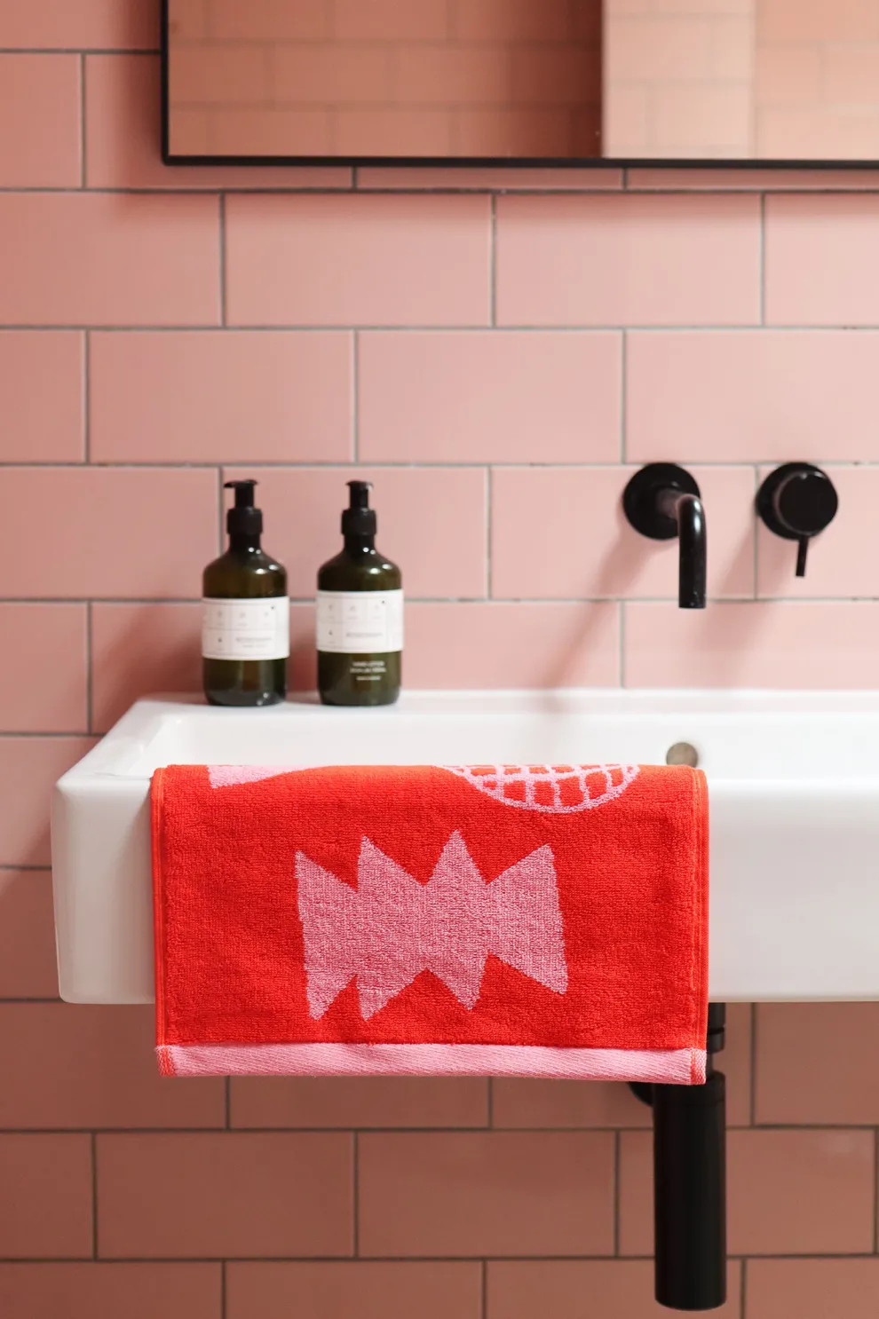 Throw some shapes in your bathroom with these colourfully clashing, abstract towels.