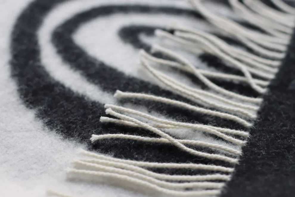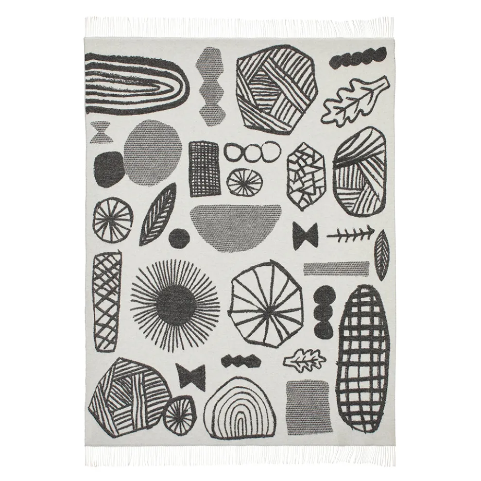 A soft lambswool blanket decorated with treasures foraged from the forest floor.