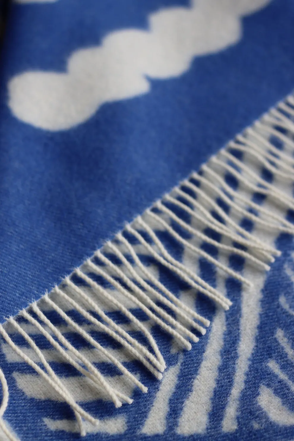 A soft lambswool blanket decorated with treasures foraged from the forest floor.