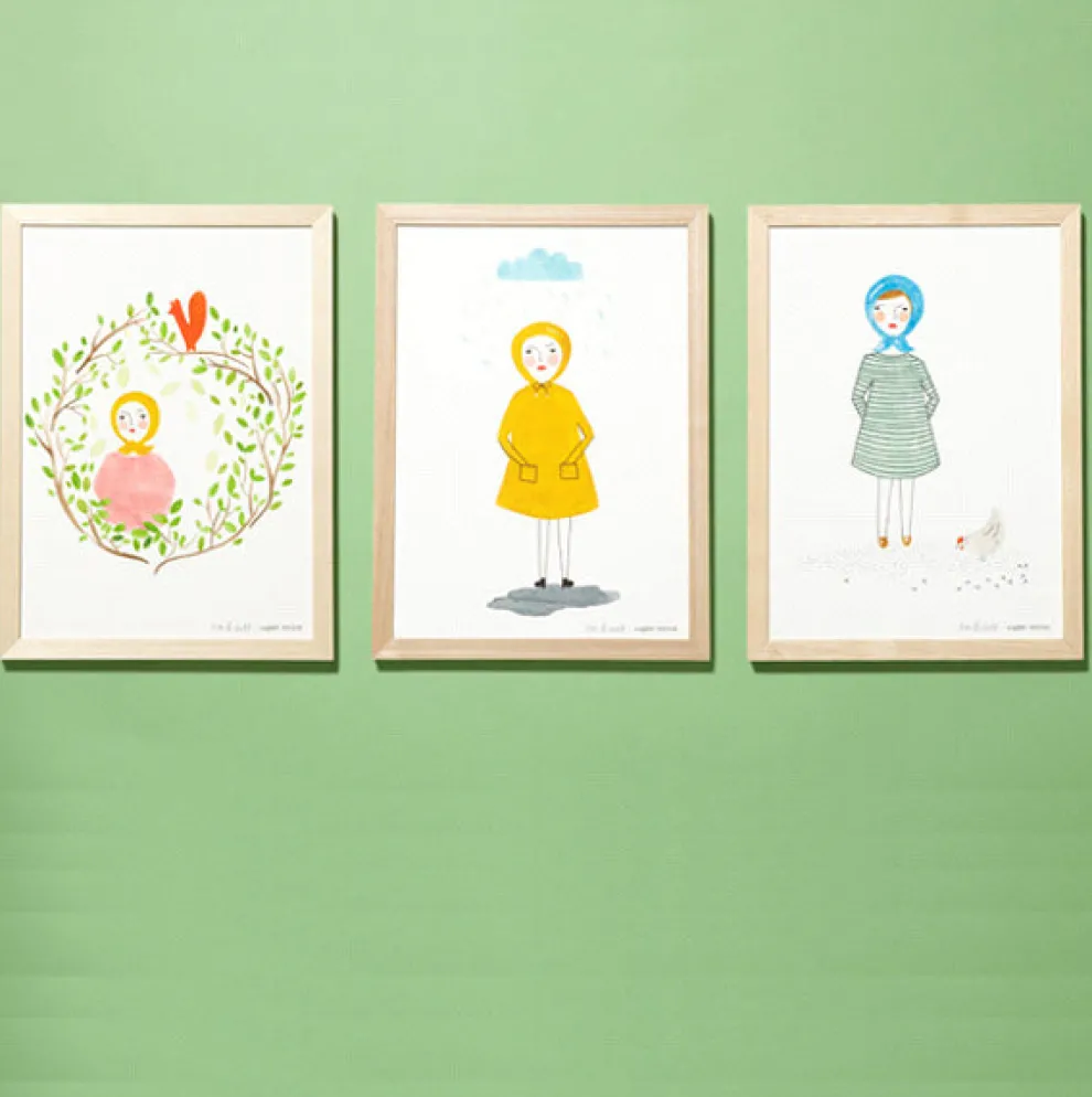 This print is part of a whimsical triptych portraying quiet moments in the countryside, illustrated by Kate Beckett for Donna Wilson.