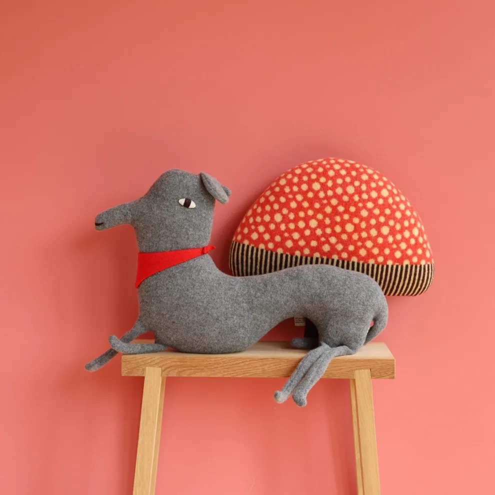 This dashing dog is made from 100% lambswool stuffed with recycled polyester stuffing, and is suitable for ages 3+.