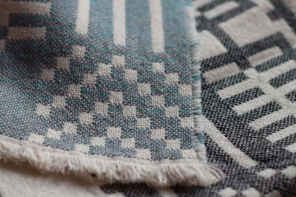 Inspired by falling rain and rolling waves, the Here Comes the Rain is a beautiful, reversible ombre double cloth design. Woven on a dobby loom, this textured throw has a similar feel to traditional Welsh woollen blankets.