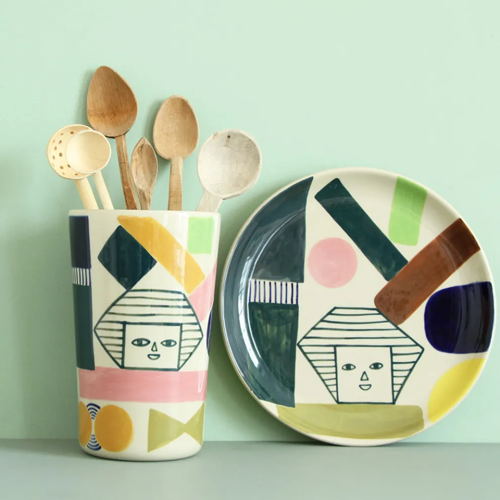 Dish up your dinner in full colour with this Kaleido Dinner Plate. Decorated with colourful shapes and friendly faces, every plate is painted by hand, meaning each one is unique.
