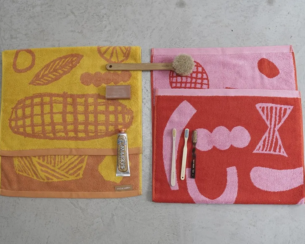 Our Marmalade Mix Towels are a colourful collage of cut-out shapes, woven in zesty orange tones.