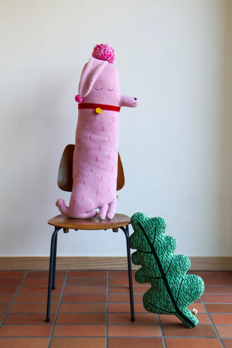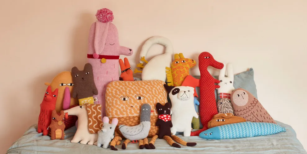 We knit all of our lambswool creatures in the UK using the softest yarns. Each one is assembled and embroidered by hand – you can find the name of each creature’s maker on its cardboard tag. We package each one in a drawstring cotton bag and give each creature a little squeeze before sending it to its new home.