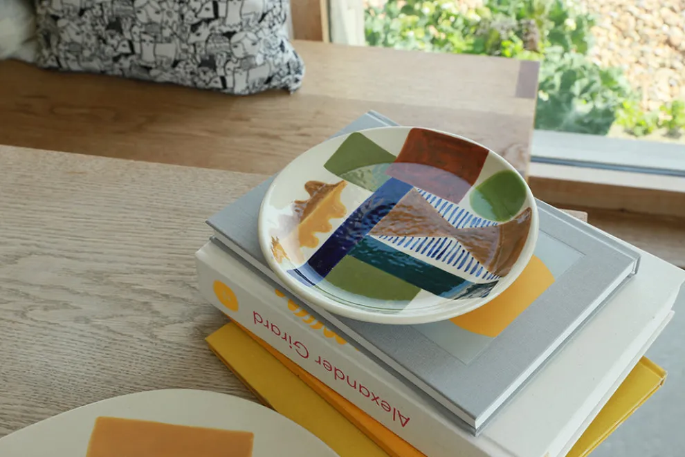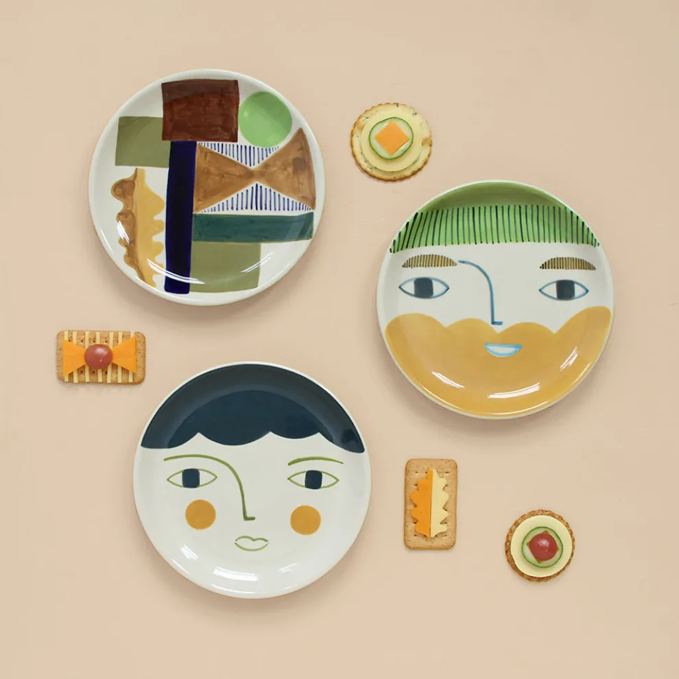 The Spring Oak Side Plate is decorated with an abstract design in a seasonal spring palette. Every plate is painted by hand, meaning each one is unique.